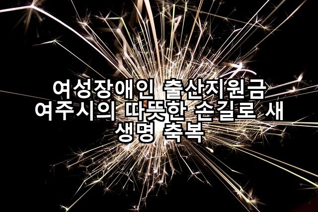 이 지원금은 여주시가 여성장애인의 삶을 존중하고, 그들의 출산과 양육을 적극적으로 응원하는 마음을 담은 중요한 정책입니다. 많은 여성장애인분들이 이 혜택을 통해 새 생명과의 만남을 더욱 기쁘고 안정적으로 맞이하시기를 진심으로 바랍니다. 여주시는 앞으로도 시민 모두가 행복한 도시를 만들기 위해 끊임없이 노력할 것입니다. 출산이라는 경이로운 순간을 여주시와 함께 더욱 빛내시길 바랍니다.